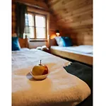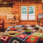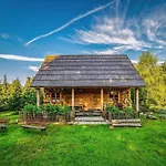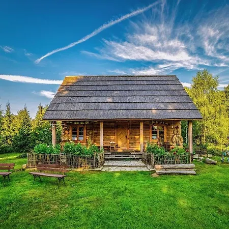 The 1-bedroom Large, Atmospheric Cottage In The Countryside Belczna features a terrace with views of the garden as well as a swimming pool.